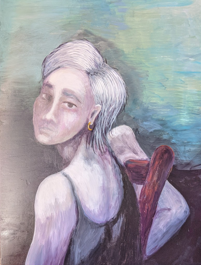 Many of my paintings are inspired by photos posted by friends. While not portraits by any means, I try to capture the particular mood, personality, or emotion of the picture. And that is how “Portrait of a girl” 12×9 acrylic on wood, came to be.